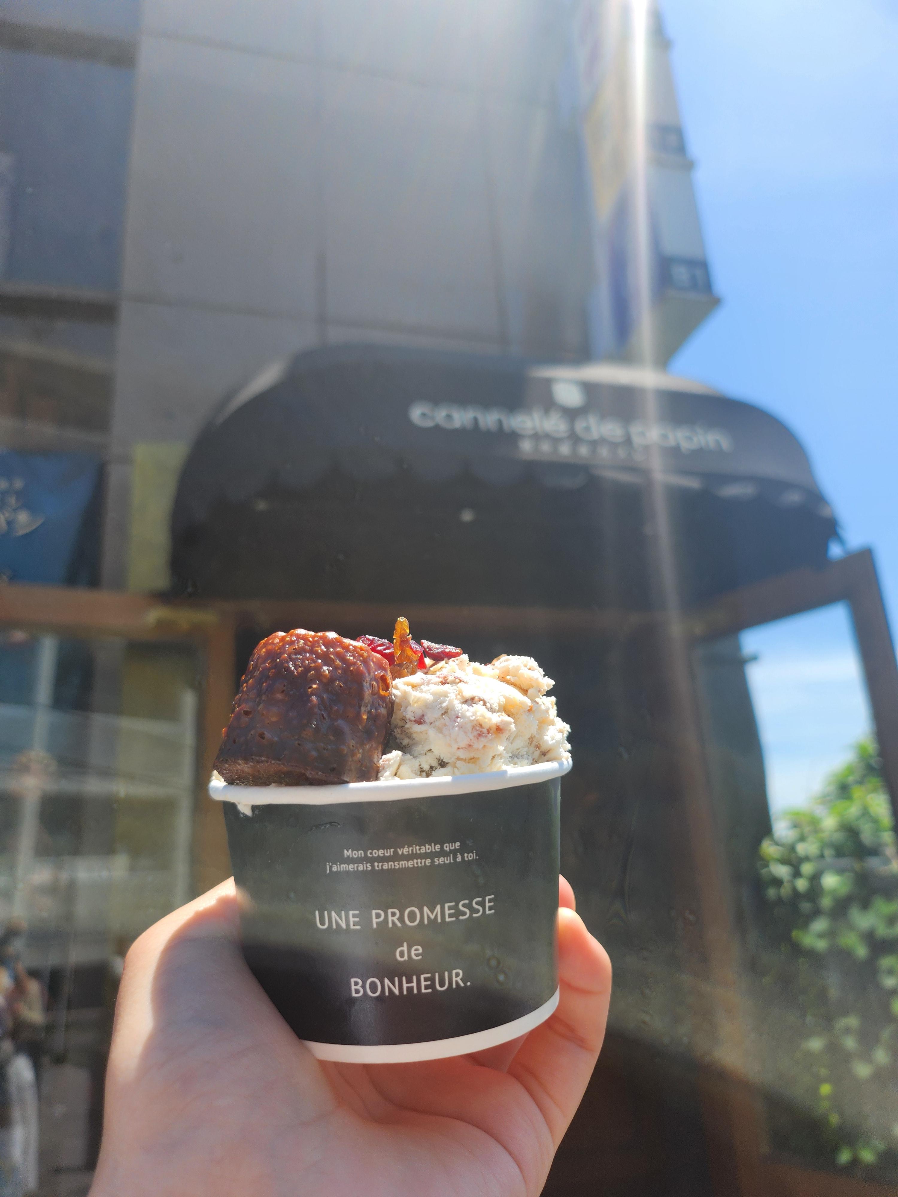나는 소금 버터 까눌레와 플레인 아이스크림에 플레인 미니 까눌레를 얹은 걸로 구매했다.