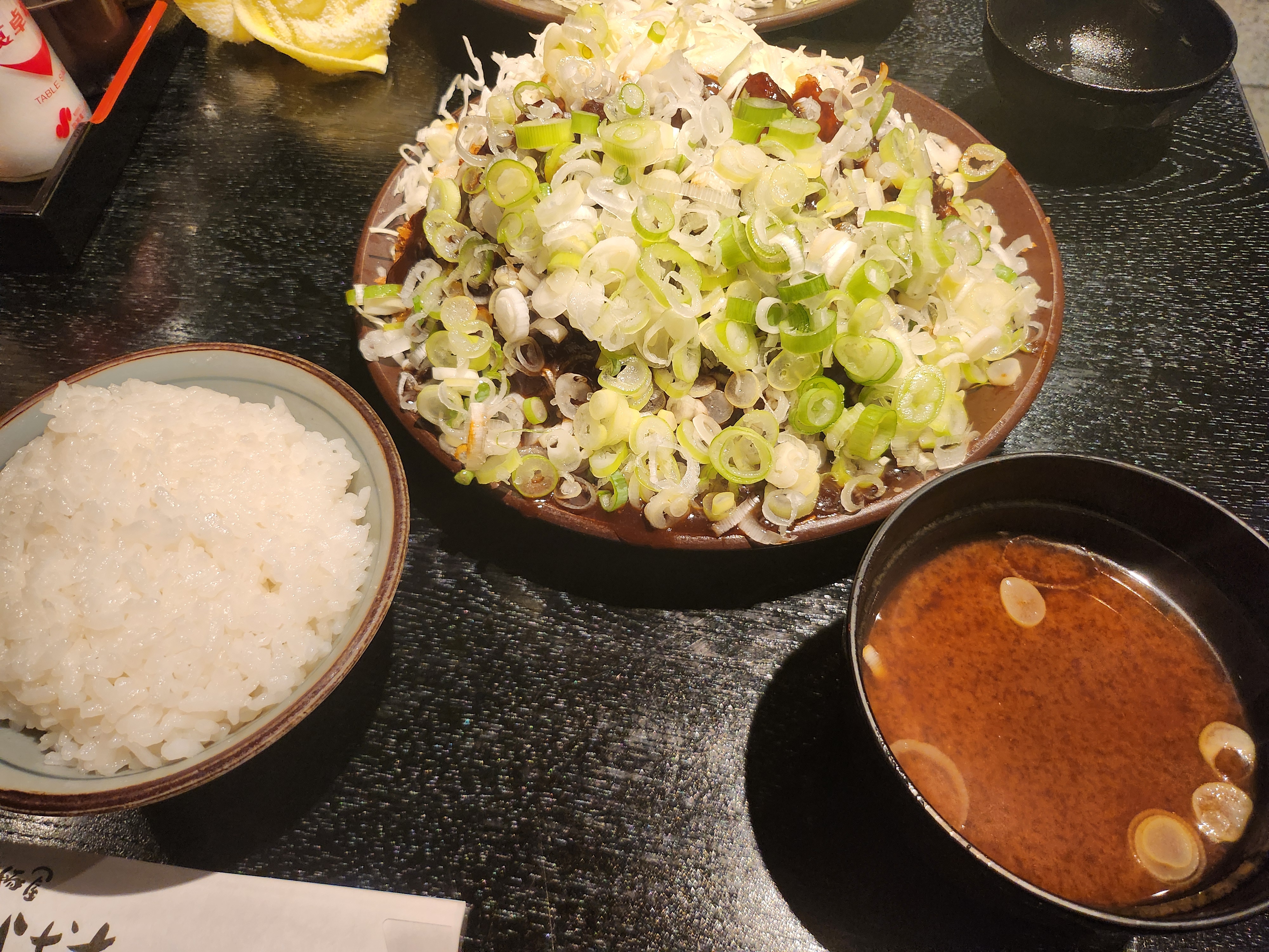 비주얼은 대략 이런 느낌으로 양배추와 미소카츠, 그리고 위에 파가 잔뜩 올라간 비주얼이다.