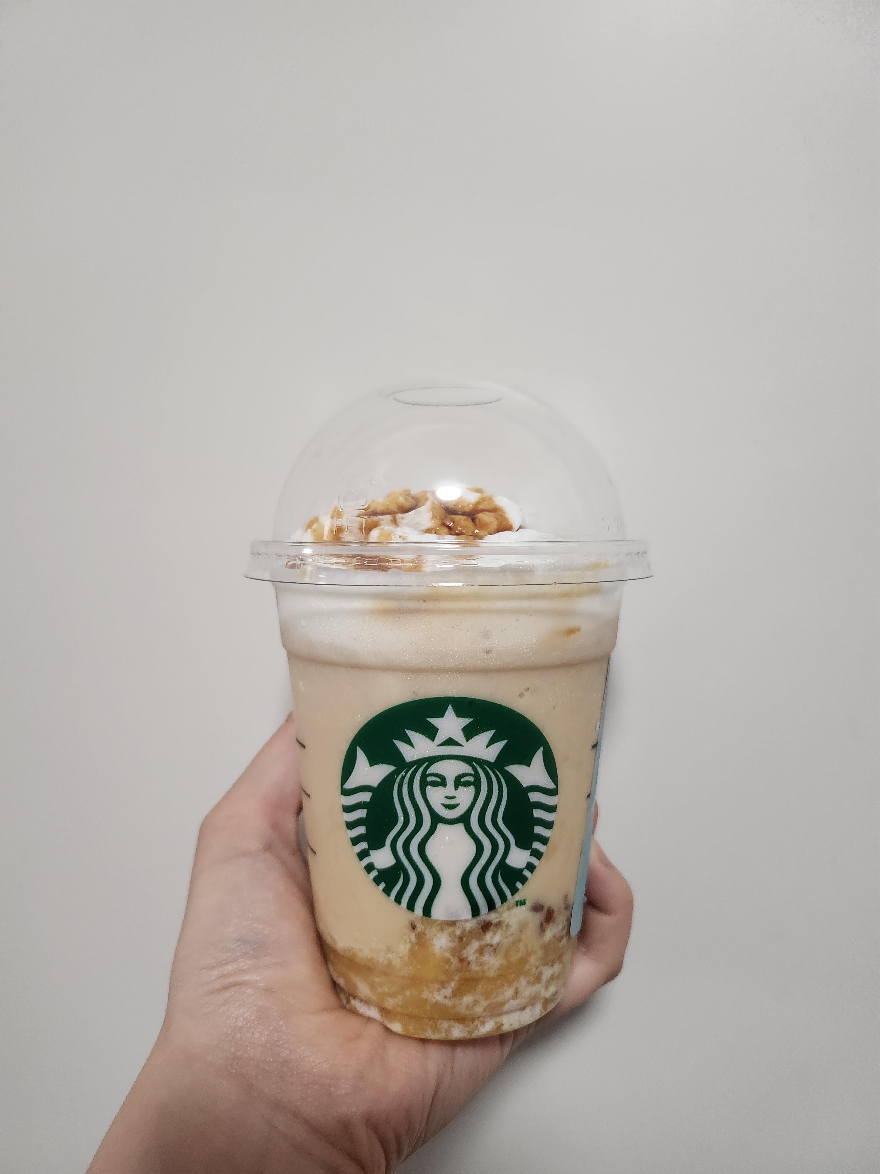 오늘(29일) 부로 새로 나온 바나나 브륄레 프라푸치노!!!!!! 오늘부터 갑자기 더워지는 바람에 좀... 녹아서 비주얼은 아쉽지만 맛있었다! 밑에는 바나나 과육과 브륄레칩이 들어 있다. 잘 섞어서 마셔주면 시원하고 부드러운 음료 사이로 브륄레칩과 바나나 과육이 씹히는데.... 솔직히 바나나 과육은 (아마) 냉동인지라 별로 내 취향은 아니었다. 다만 브륄레 칩을 씹을 때 퍼지는 단맛과 식감이 좋았다! 바나나 과육 먼저 다 먹어버리고 남은 음료를 마셨을 땐 오히려 조화가 좋고 맛있었음! 게다가 아몬드 브리즈라서 끝에 남는 고소함이 좋았다.